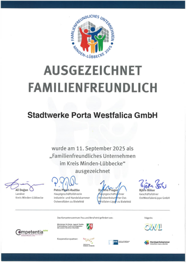 Die Auszeichnung als „Familienfreundliche Unternehmen im Kreis Minden-Lübbecke“ bestätigt uns in unserer Überzeugung, dass wir auch in Zukunft die Lebenswelten der Mitarbeiter in die Art des Arbeitens mit einbeziehen müssen und ist eine zusätzliche Motivation für uns, weiterhin gemeinsam mit unseren Mitarbeitern neue Ideen und moderne Lösungen zu entwickeln.